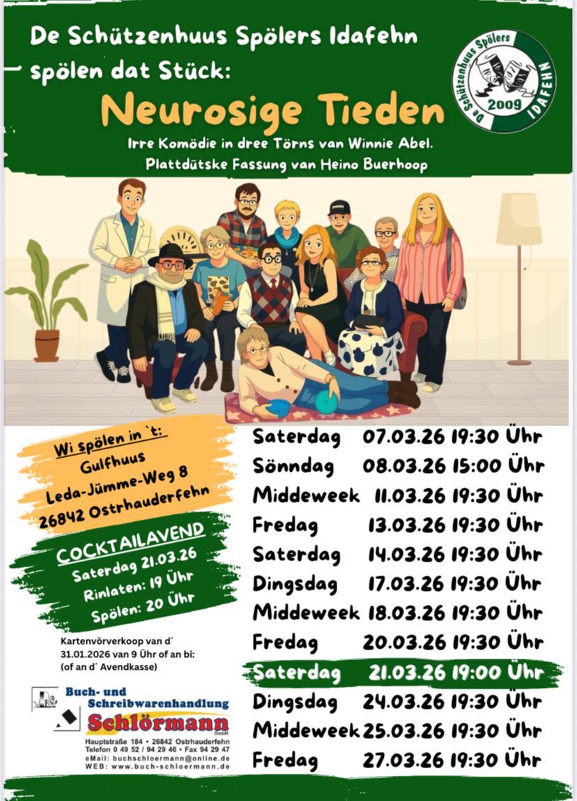 Endlich ist es so weit: In dieser Spielzeit präsentieren wir euch die turbulente Komödie „Neurosige Tieden“